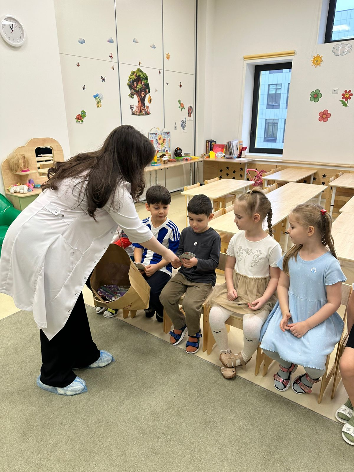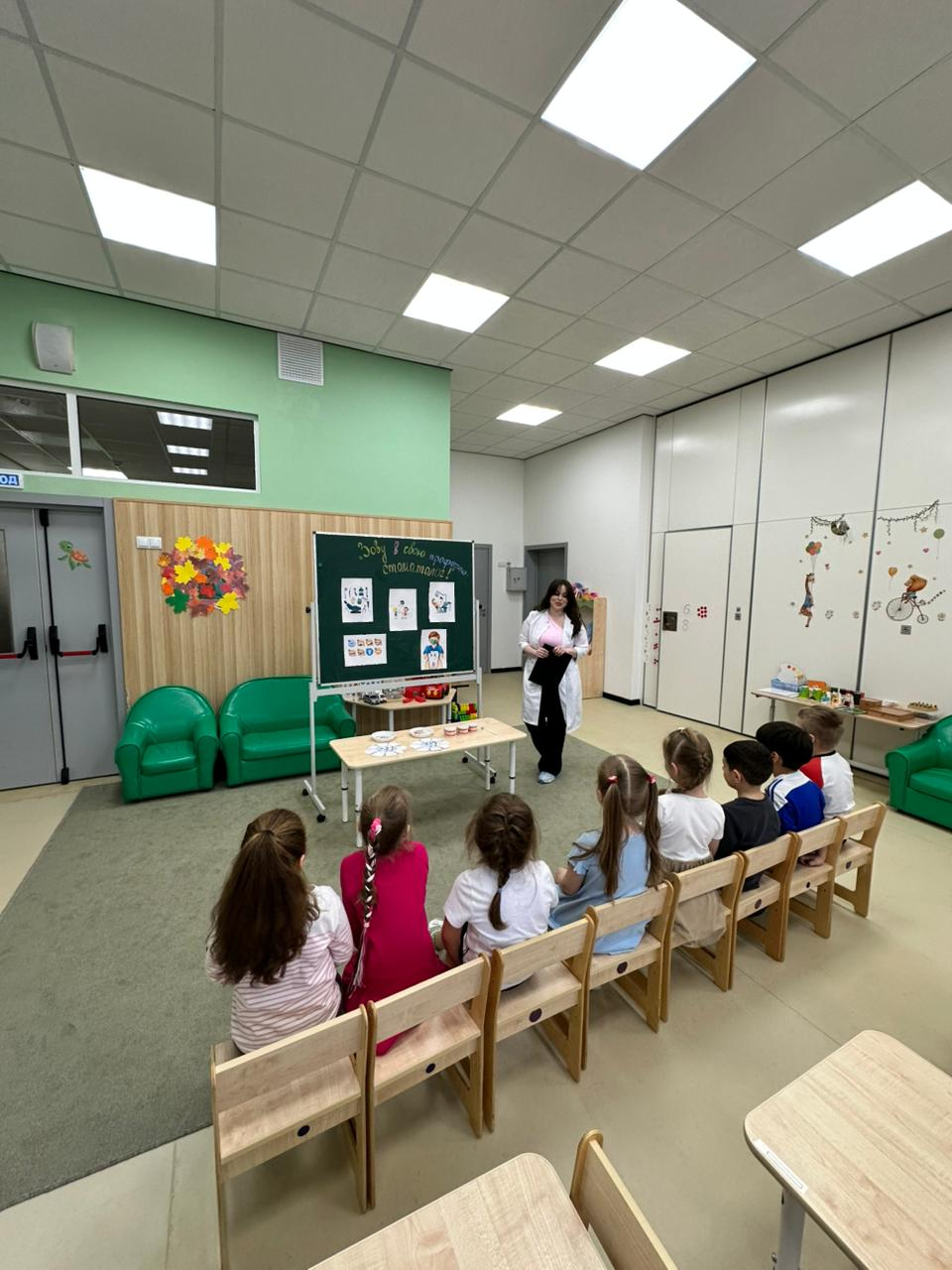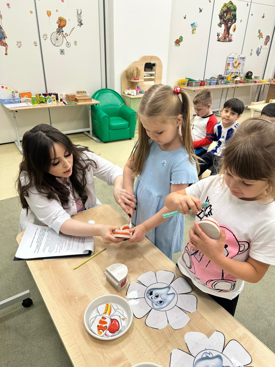 В старшей группе "Черепашки" прошла познавательная встреча с мамой, врачом стоматологом, которая рассказала о своей работе, о важности ухода за зубами и показала как правильно нужно чистить зубы. Воспитатели: Балтаева Мария Бабакулыевна, Аветисян Венера Фашаевна.