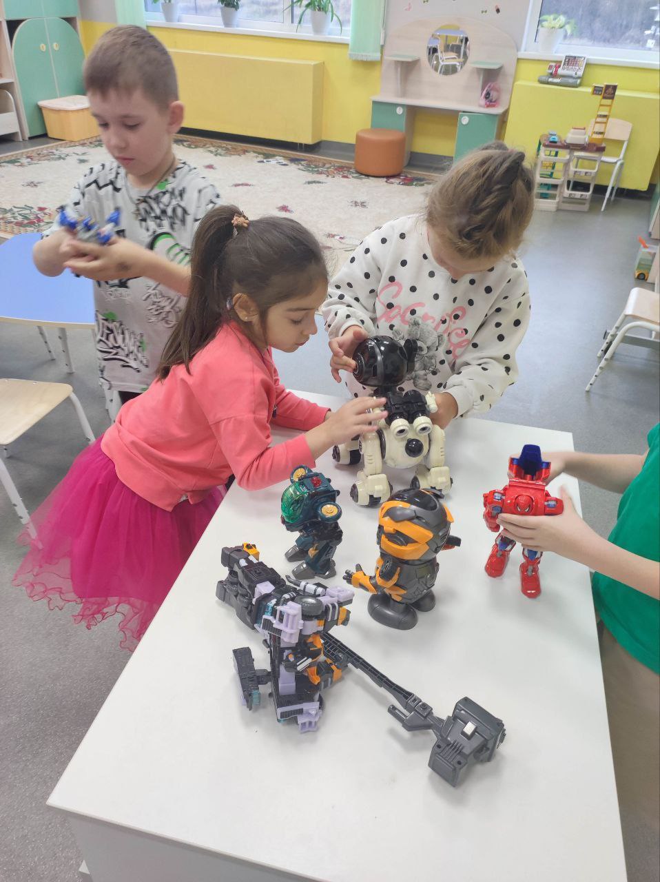 Ребята также представили свои интерактивные игрушки, принесенные из дома, среди которых были собака-полицейский, танцующий робот БамблБи и многие другие, продемонстрировав свои современные гаджеты.