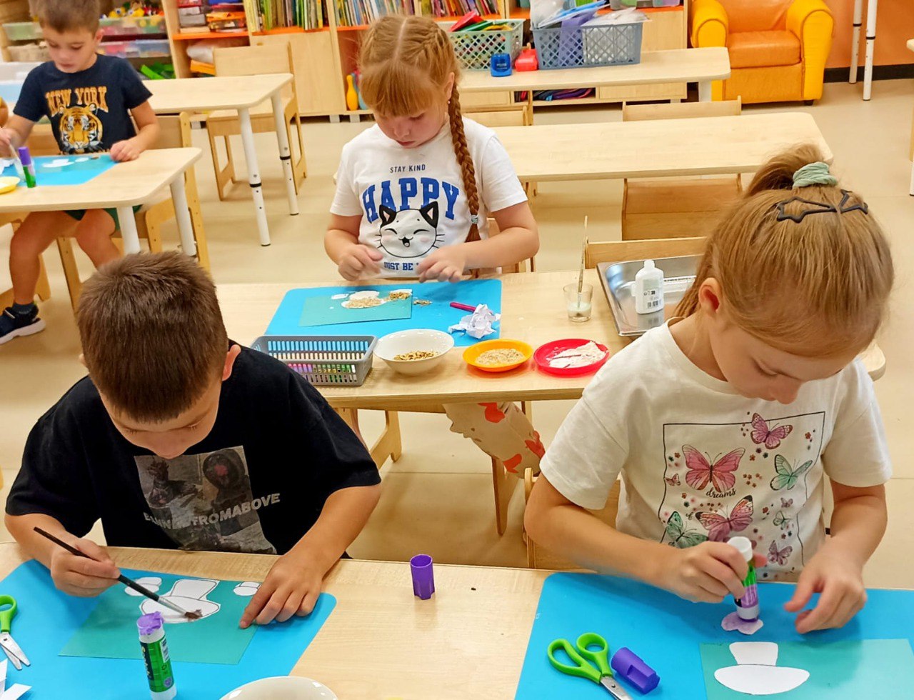 Также много впечатлений у детей вызвало выполнение аппликации, с использованием зерен разной крупы. В результате которой , у ребят получились замечательные грибные полянки.
