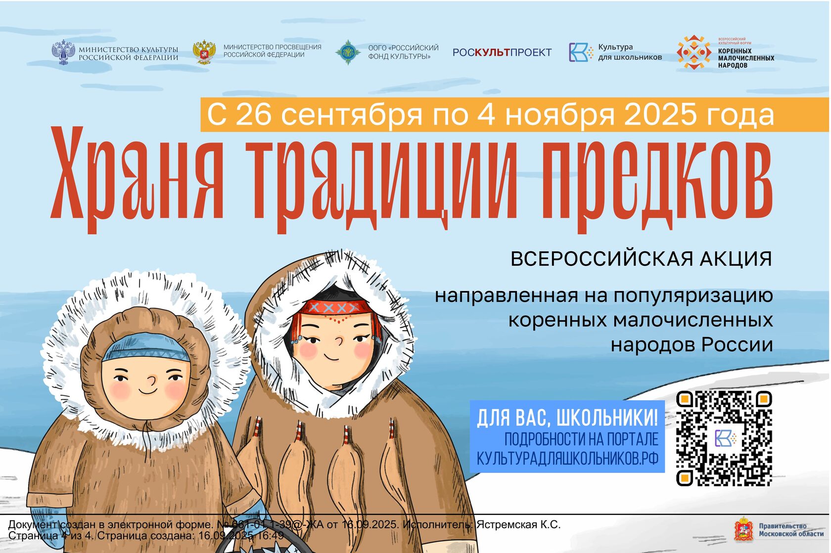 Всероссийская акция «Храня традиции предков», организованная в рамках проекта «Культура для школьников» и Всероссийского культурного форума коренных малочисленных народов России