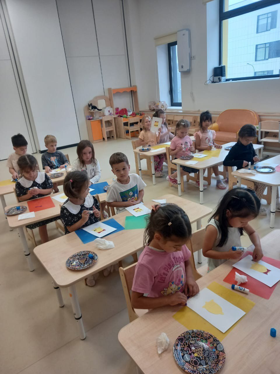 Аппликация "Колокольчик наш поет, на урок он всех зовет" (воспитатель старшей группы Михайлова Юлия Васильевна).