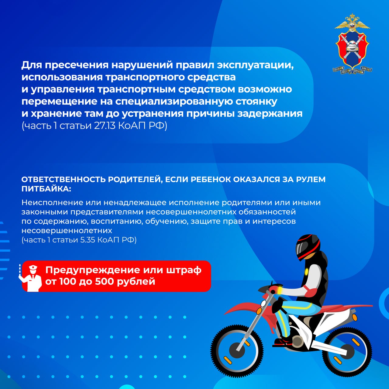 📲Помните: выезжая на питбайке на дорогу общего пользования, вы не только нарушаете закон, но и создаете прямую угрозу для себя и других участников движения!