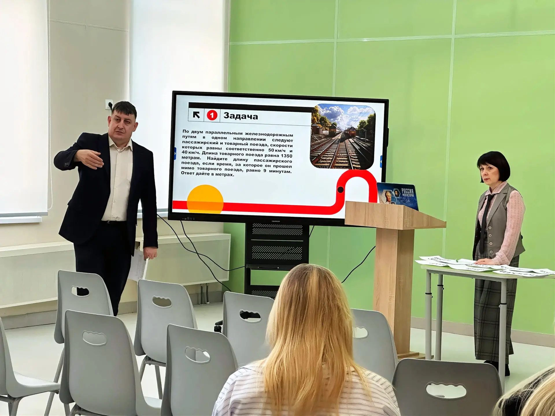 Интегрированный урок по математике и физике состоялся в 9 В и 10 Ц классах. Тема «Относительность движения в математических задачах ГИА». Ученики не только научились решать сложные задачи по математике о поездах и пешеходах, но и узнали, как с помощью физических понятий понимать и объяснять смысл условия задачи, определяя систему отсчета. А еще были веселые путешествия с выбором слогана движения и воспитательным смыслом
